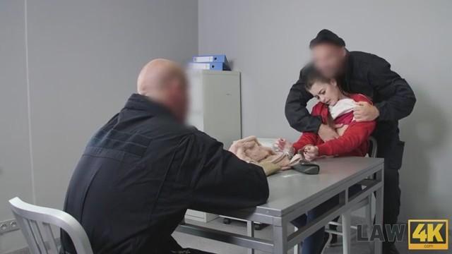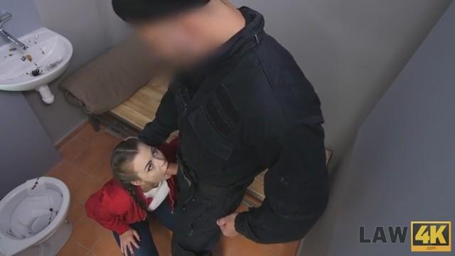 Юная девушка хотела легких денег, но нарко диллерство завело красотку только в тюрьму. Она сидя в камере стала куда нежнее и послушнее чем при задержании и даже встав на коленки отсосала копу прям через решетку. Малышка готова на все ради свободы и одного сочного минета будет маловата. Во время допроса сучке досталось уже два больших стояка, каждый из которых придется обслужить орально, а затем худышка с маленькими сиськами вытянется раком на столе. Ее брутально выебут в МЖМ групповухе, воспользовавшись тугой пилоткой ради наслаждения, а затем с залитым спермой лицом оставят в тюрьме.