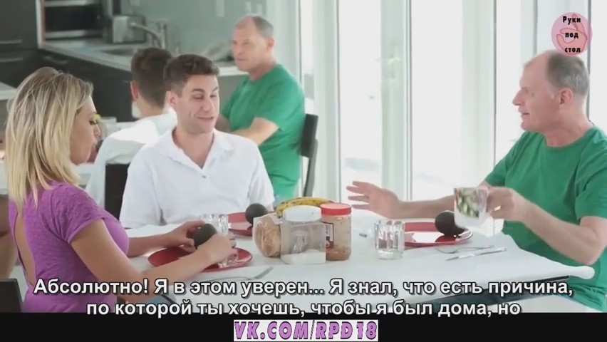 Вернувшись из спортивного зала домой, парнишка и не думал, что станет свидетелем откровенного разговора о сексе его отца и мачехи. Как оказалось, блондинка хочет секса, а его папаша нет. Вот еще один повод, что обсудить по телефону с лучшим другом. Но его разговор теперь подслушала приемная мамка. Милфа воспользовалась желанием парня и трахнула его на диване, пока ее муж спит в спальне. Так парочка и стала любовниками. То красотка отсасывает хуй под столом во время завтрака, то бесстыдно отдается рядом со спящим супругом.