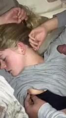 Светловолосая сучка спит как убитая - даже не реагируя на солнечный свет, который обычно заставляет людей пробуждаться. А хуй-то стоит, и его никуда не деть, так что надо скорей решать вопрос. Но ничего страшного - можно воспользоваться секретным приемом и возбудить девчонку, просто помассировав ей грудь, одновременно пытаясь запихать стояк в рот. И о чудо - рефлексы сработали как надо, ротик приоткрылся, и теперь можно начинать ее туда шпилить. Хоть она еще и сонная, но это не помешало обкончать ей лицо - главное, чтобы опять не уснула и постель не засрала.